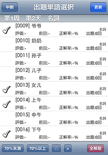 履歴情報で正解率が 70%未満のものに対して、レ点をつけます。