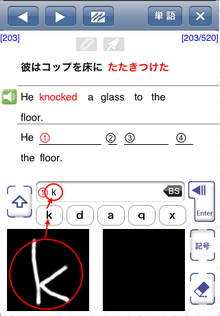 手書き入力手書き入力にて文字を入力し、単語を書き上げていく一連の流れは以下の通りです。 |